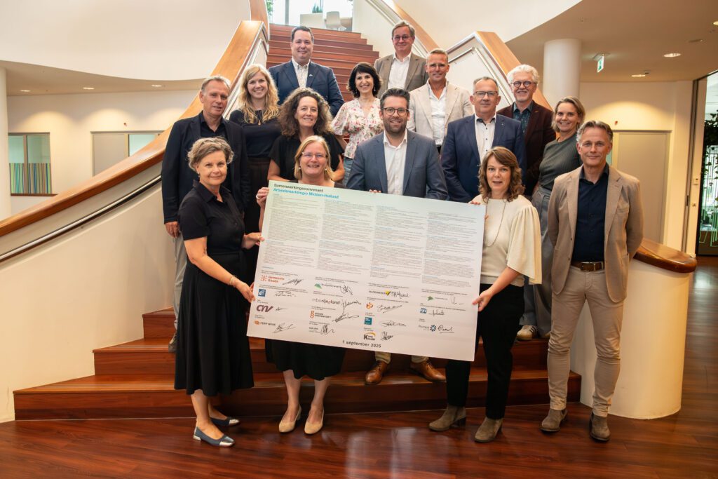 Deze doelen en andere samenwerkingsafspraken zijn vastgelegd in een convenant waar de betrokken partners op 1 september hun handtekeningen onder hebben gezet. Het gaat om de gemeenten Bodegraven-Reeuwijk, Gouda, Krimpenerwaard en Waddinxveen, het UWV, de vakbonden CNV en FNV, mboRijnland en De Goudse Waarden, Samenwerkingsorganisatie Beroeps- en Bedrijfsleven (SBB), de werkgeversorganisaties VNO-NCW en Gouda/ Midden-Holland Onderneemt, de sociaal ontwikkelbedrijven Promen en Ferm Werk en Kernkracht. “Met dit convenant laten de partijen zien hier gezamenlijk hun schouders onder te willen zetten”, aldus Oppelaar.